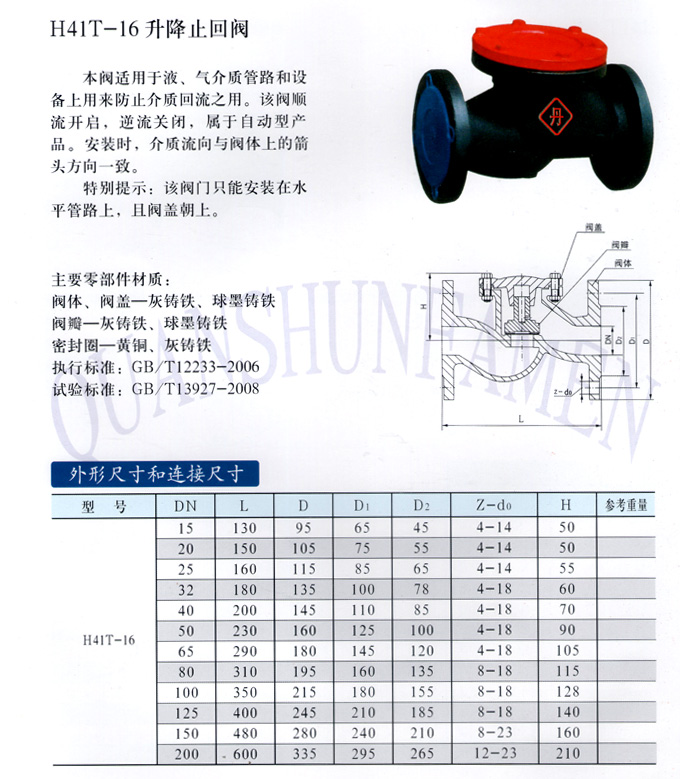 H44T-10/16法蘭旋啟式止回閥(加長)